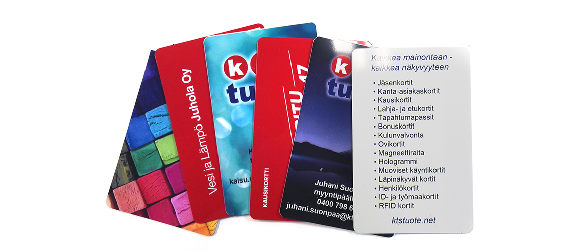 - Toimitamme muovikortit yrityksille, yhdistyksille, seuroille, liitoille, järjestöille, julkiselle sektorille sekä vaikka yksityisille henkilöille.