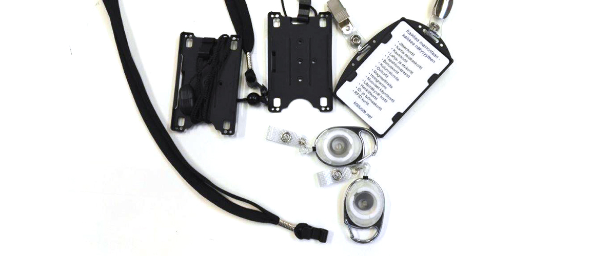 - Muovikorttien lisäksi erilaiset korttitarvikkeet korttipidikkeistä kaulanauhoihin ja kulunvalvonta-jojoihin ovat osa tuotevalikoimaamme.