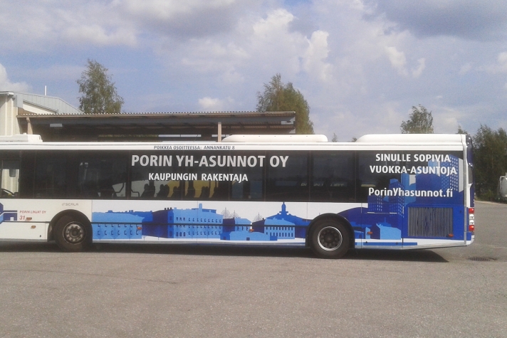 Joukkoliikennetuotteilla tavoitat kaupunkilaiset. Joukkoliikenne on trendikäs ja ajankohtainen massamedia. Myymme mainostilat Porin paikallisliikenteen busseihin. Bussimainonta on tehokkain mainonnan muoto kontaktihinnoilla laskettuna. Erilaisia mainospintoja ja haluamallasi mainosjaksona.